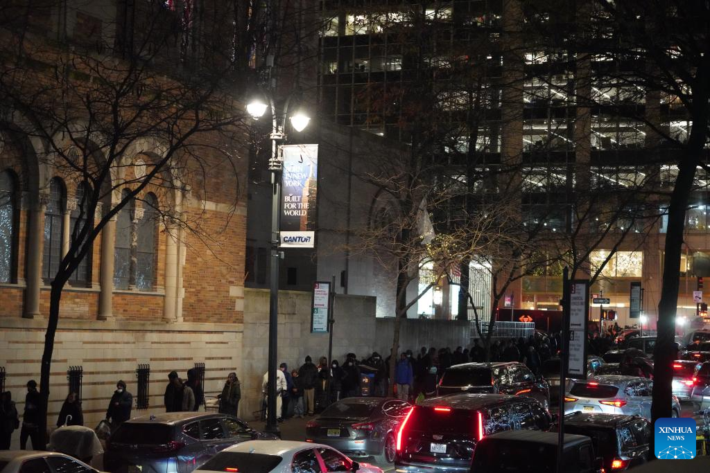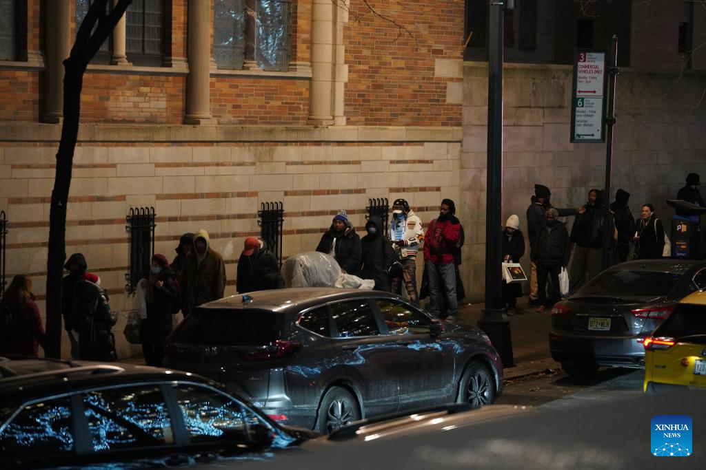People line up to get free meals at a shelter in New York City, the United States, Dec. 17, 2025. (Xinhua/Zhang Fengguo)