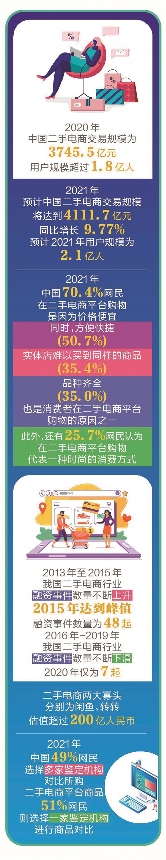 循環(huán)經(jīng)濟有望迎來大發(fā)展。近日,國家發(fā)改委等多部門印發(fā)“十四五”循環(huán)經(jīng)濟發(fā)展規(guī)劃的通知, 其中提出,要鼓勵“互聯(lián)網(wǎng)+二手”模式發(fā)展, 強化互聯(lián)網(wǎng)交易平臺管理責(zé)任,加強交易行為監(jiān)管,為二手商品交易提供標準化、規(guī)范化服務(wù)。羊城晚報記者梳理相關(guān)數(shù)據(jù)發(fā)現(xiàn),近年來人們“買二手、用二手”的接受程度上漲,在資本的助推下,國內(nèi)的二手交易平臺已經(jīng)形成了相當規(guī)模,但在用戶逐年上漲、市場越來越火爆的同時,二手交易也暴露出交易過程問題頻發(fā)的弊病,亟待監(jiān)管。