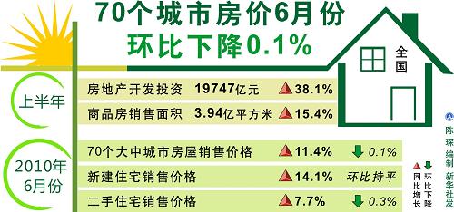 70個(gè)城市房價(jià)6月份環(huán)比下降0.1%