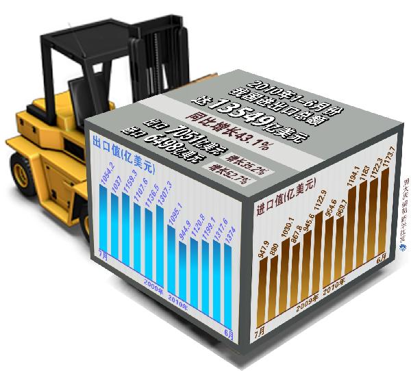 圖表:2010年1-6月份我國進(jìn)出口總額達(dá)13549億美元