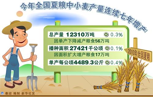 今年全國夏糧中小麥產(chǎn)量連續(xù)七年增產(chǎn)