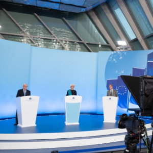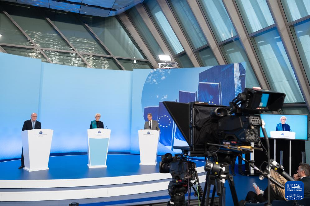 12月18日,欧洲中央银行行长拉加德(中)在德国法兰克福欧洲央行总部出席新闻发布会。新华社发(欧洲央行供图)