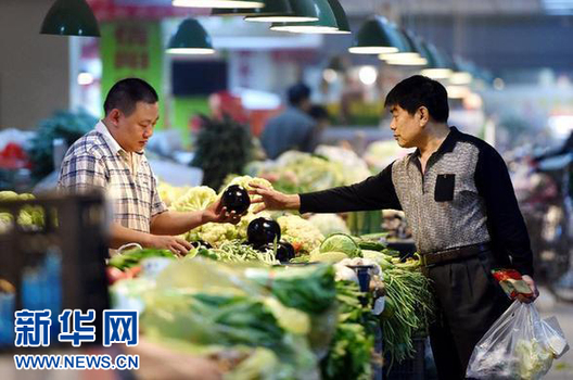 2015年10月14日,市民在鄭州市緯四路菜市選購蔬菜。新華社記者 李博 攝