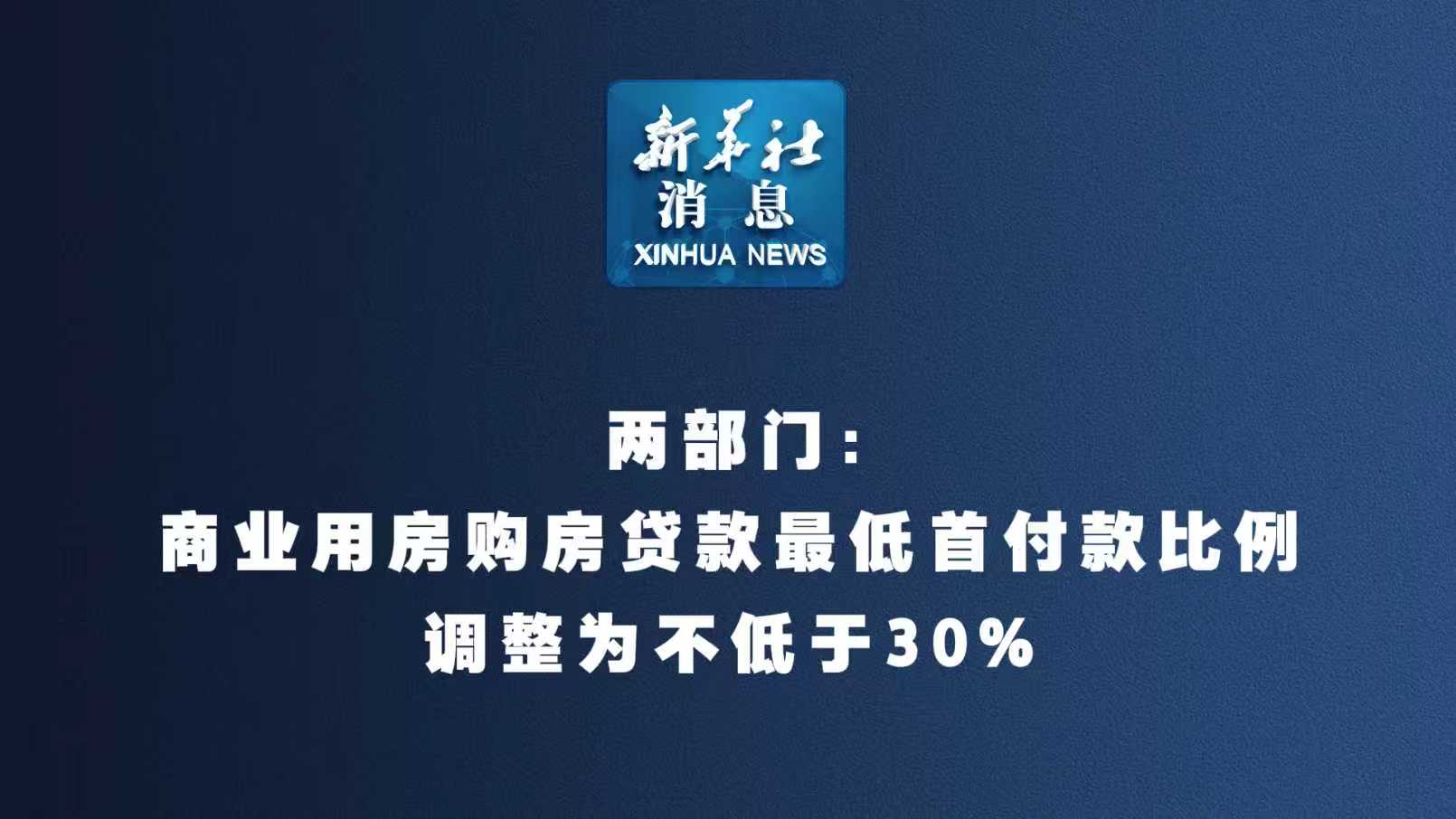 兩部門:商業(yè)用房購房貸款最低首付款比例調整為不低于30%