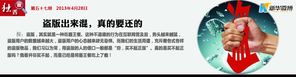 盜版、山寨其實有苦但難言 猖獗的盜版,低俗的山寨,無恥的借鑒。是被生活磨去了棱角,被現(xiàn)實澆熄了熱情,被名利迷失了心志,被成長掩蓋了純真。
