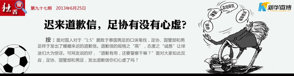 央視也不能忍了 “這樣的檢查沒有觸及靈魂,應該打回去重寫。”——央視評足協(xié)道歉。足協(xié)、國管、國足上演道歉信帽子戲法,怎么看怎么像兒戲,別說觸及靈魂了,純屬耍嘴皮子。