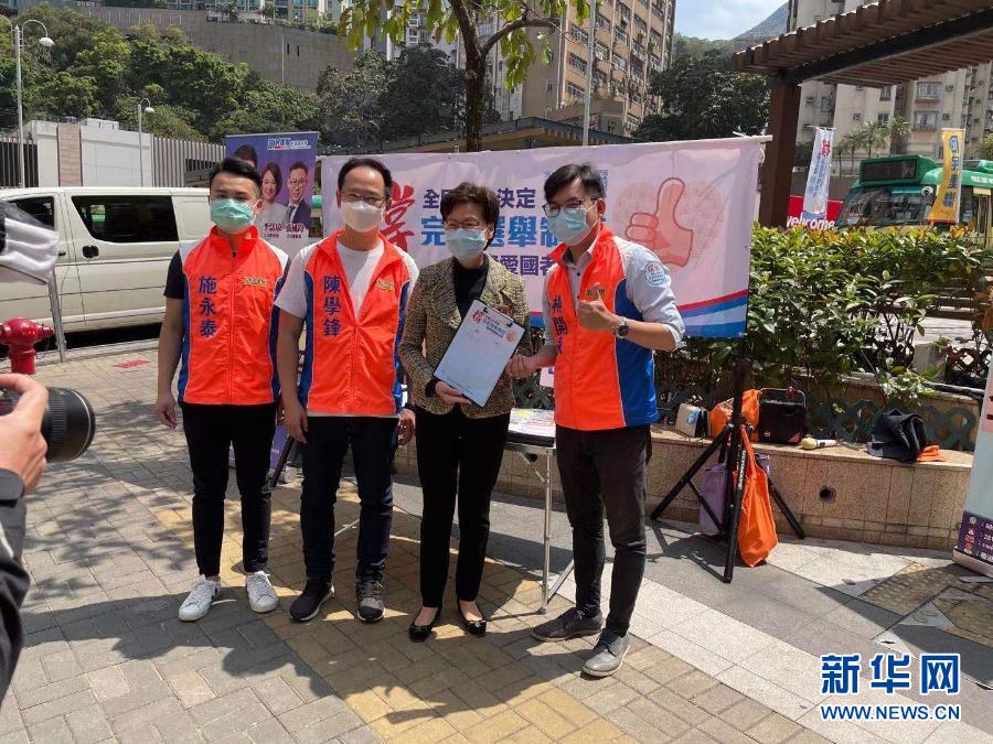 新華社香港3月15日電(記者劉明洋)連日來,“香港各界撐全國(guó)人大決定完善選舉制度連線”在全港各區(qū)擺設(shè)街站,收集市民支持全國(guó)人大決定的簽名。香港特區(qū)行政長(zhǎng)官林鄭月娥15日前往位于港鐵堅(jiān)尼地城站的街站簽名,支持落實(shí)“愛國(guó)者治港”原則,并為街站工作人員打氣加油。