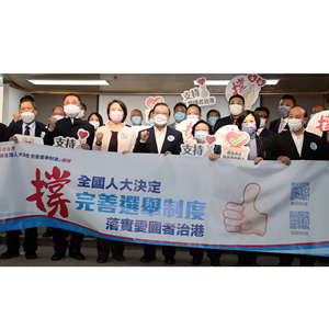 香港工聯(lián)會(huì)會(huì)長吳秋北、香港經(jīng)民聯(lián)主席盧偉國、香港廣東社團(tuán)總會(huì)主席龔俊龍、香港福建社團(tuán)聯(lián)會(huì)主席吳換炎等均表示,將堅(jiān)定支持全國人大完善香港選舉制度的決定,讓“一國兩制”行穩(wěn)致遠(yuǎn),令香港長治久安。