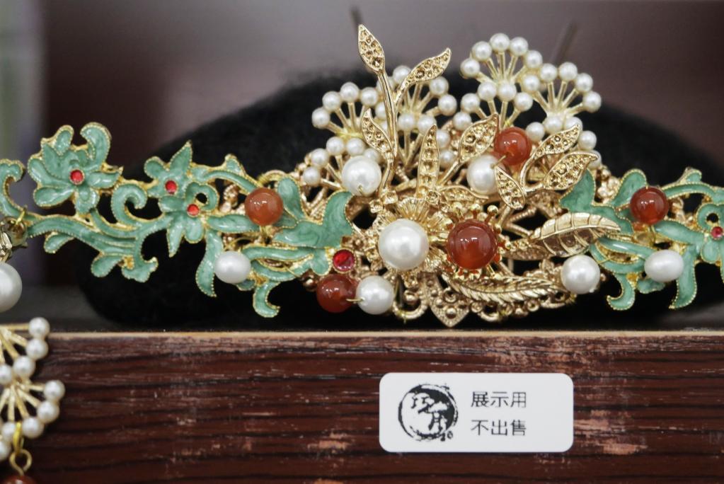 在香港葵涌一座工業(yè)大廈內(nèi),漢文化工作室中擺放的頭飾(7月10日攝)。新華社記者 王申 攝
