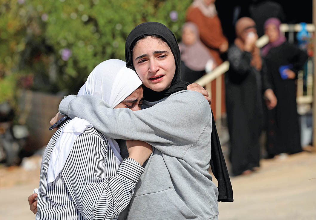 2024年9月5日,在约旦河西岸城市图巴斯,巴勒斯坦民众因亲人在以色列空袭中丧生而痛哭