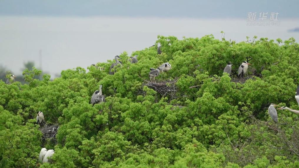 鄱陽湖畔蒼鷺進入繁育高峰期