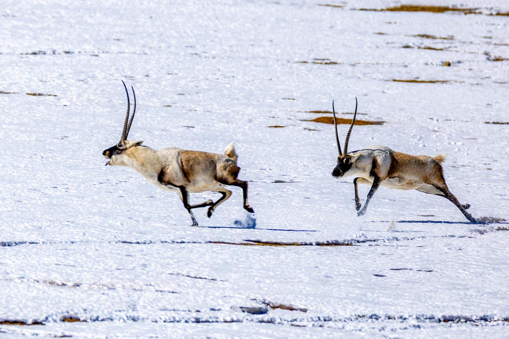 为了种群的延续,藏羚羊在雪山下草原上奔跑、追逐、争斗,在苍茫天地间演绎着一幕幕生动壮美的“冬日战歌”。