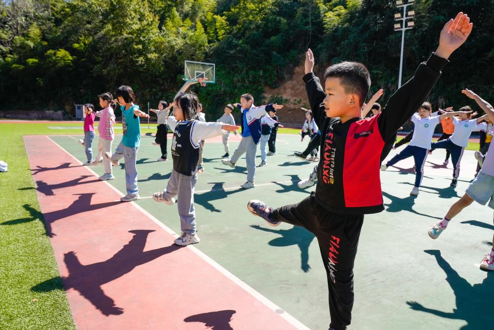 2025年11月8日,福建省龙岩市永定区合溪电力希望小学的学生在操场做操。