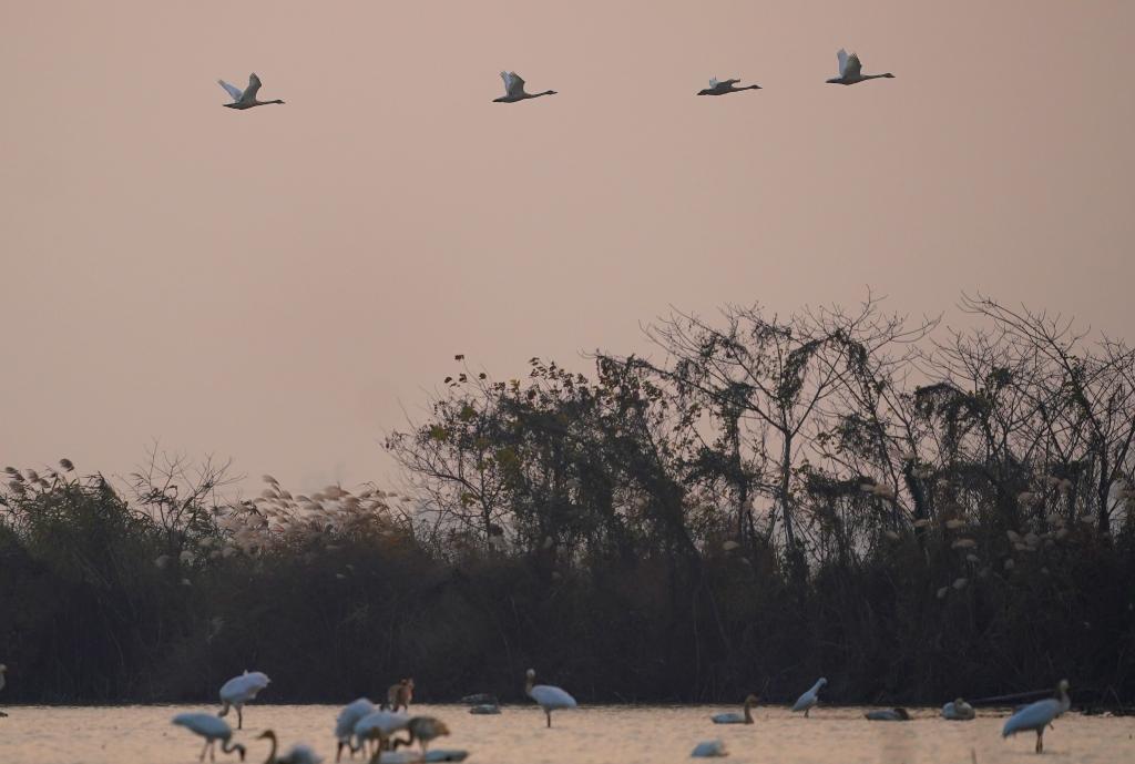 南昌:五星白鹤保护小区迎来候鸟栖息高峰