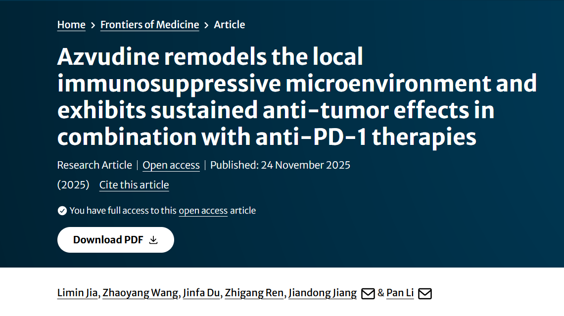 近日,我国科研团队在肿瘤免疫治疗联合策略研究领域取得积极进展。真实生物联合郑州大学第一附属医院及中国医学科学院医药生物技术研究所共同完成的研究成果,探讨了阿兹夫定联合抗PD-1疗法的抗肿瘤效果与机制,并已在国际学术期刊《Frontiers of Medicine》正式发表。