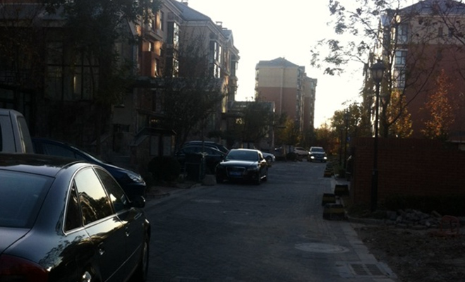 在別墅區(qū)內(nèi)記者在某處入戶門前注意到庭前綠地已經(jīng)裸露出來,里邊的綠植也已經(jīng)很長時間無人打理,其中散布落葉殘枝。而且社區(qū)內(nèi)盡管有地上、地下停車場,但是仍存在車輛隨意停放的現(xiàn)象。有些占據(jù)了公共活動空間,有些則直接占用了一個車道。