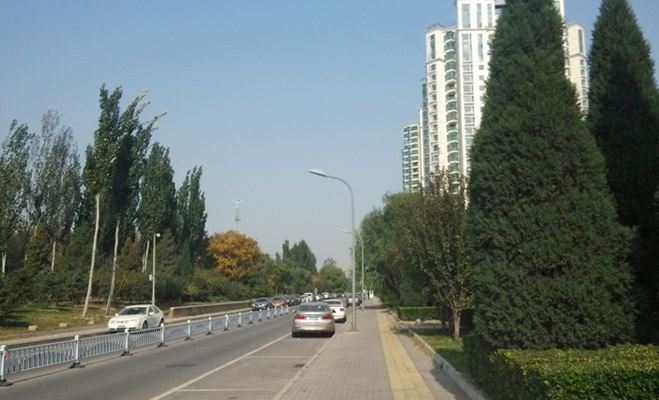 項(xiàng)目位于地鐵北苑路北站5號線西側(cè),記者從地鐵站下車步行大約8分鐘左右到達(dá)了小區(qū)南門。同側(cè)還有公交車站,快速公交3線,751路等。東南方向的交通設(shè)施完備,出行十分方便。