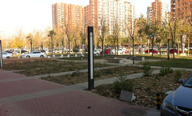 也許是波普公社剛建成的原因,小區(qū)的綠化還未成形,從目前的狀況來看,樹木和綠地都剛剛植入,應(yīng)該要經(jīng)過一段時(shí)間的培育之后,才能達(dá)到綠化的效果。