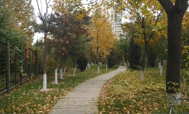 資料顯示社區(qū)內綠化高達50%,根據記者觀察幾乎每棟建筑周圍都有相對獨立的綠化面積,雖然綠植種類較為單一,但是生長情況良好。時值金秋,園區(qū)景觀看起來也別有韻味,在社區(qū)內記者發(fā)現(xiàn)了好幾位手持相機拍照的老人。