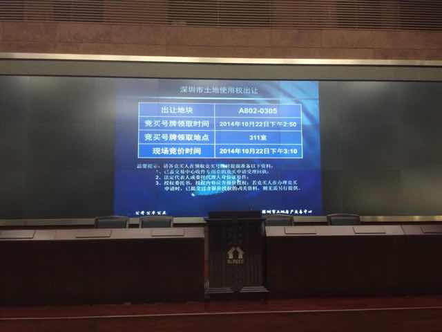 | 10月22日下午3點(diǎn),深圳今年首宗居住用地公開(kāi)掛牌出讓。根據(jù)深圳市土地房產(chǎn)交易中心9月15日下午發(fā)布的公告顯示,將出讓的該宗居住用地宗地號(hào)為A802-0305,位于龍華新區(qū)民治辦事處轄區(qū),掛牌起始價(jià)252500萬(wàn)元(25.25億元),土地用途為居住用地,土地面積46646.77平方米,建筑面積186500平方米,土地使用年限70年。記者現(xiàn)場(chǎng)了解,共有7家競(jìng)買人參與競(jìng)拍,首輪報(bào)價(jià),拿3號(hào)牌的競(jìng)買人應(yīng)價(jià)。 |