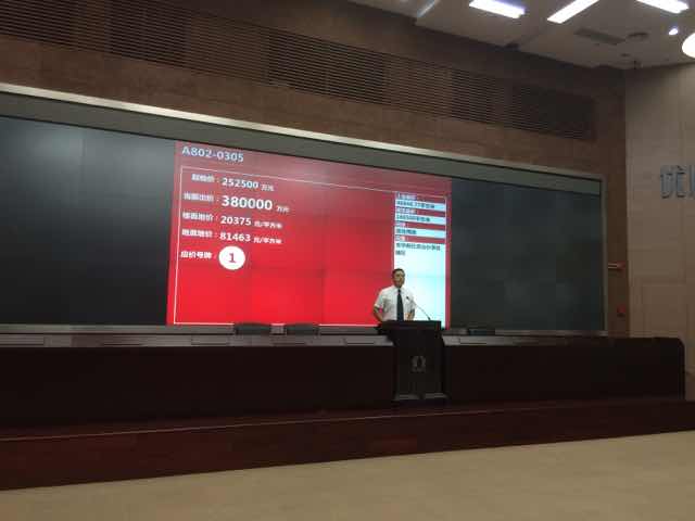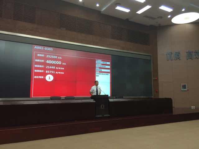 | 3點(diǎn)10分,現(xiàn)場(chǎng)競(jìng)買開(kāi)始。當(dāng)價(jià)格迅速推升至30億元時(shí),主持人多次叫價(jià),但無(wú)人競(jìng)價(jià)。 |