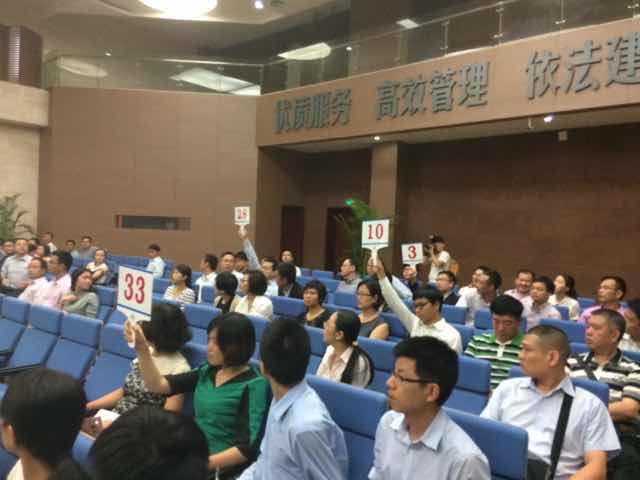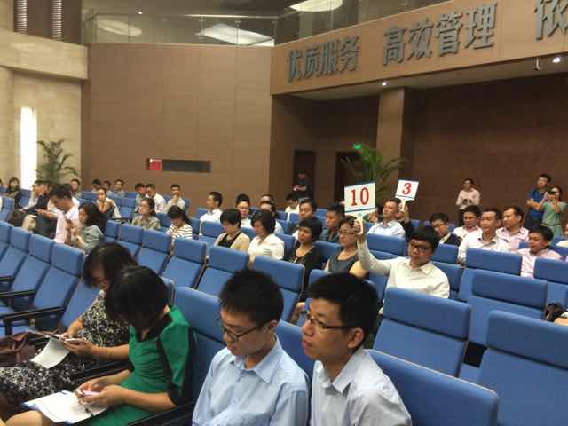 | 到15點(diǎn)50分左右,競(jìng)爭(zhēng)開(kāi)始白熱化。此前僅1次應(yīng)價(jià)的28號(hào),開(kāi)始口頭報(bào)價(jià),直接將價(jià)格從33億元2千萬(wàn),推至34億元。主持人說(shuō),歡迎大家口頭報(bào)價(jià)。 |