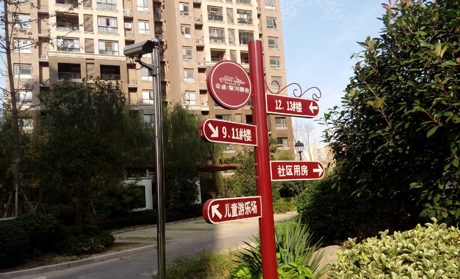 從小區(qū)第一個(gè)路口開始,每隔百米左右的距離都有一個(gè)路標(biāo),清楚指示小區(qū)的各個(gè)樓棟,以及籃球場(chǎng)、物業(yè)管理處等所在方向。并且這些路標(biāo)用木牌制作,看上去也很美觀。