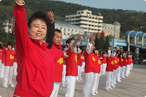 阿姨們手揮小國(guó)旗獻(xiàn)禮國(guó)慶節(jié) |