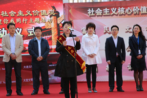 大連市青泥社區(qū)書記孫延令宣讀倡議書 |