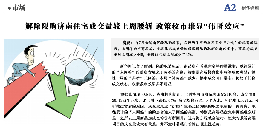 解除限購濟(jì)住宅成交量較上周腰斬