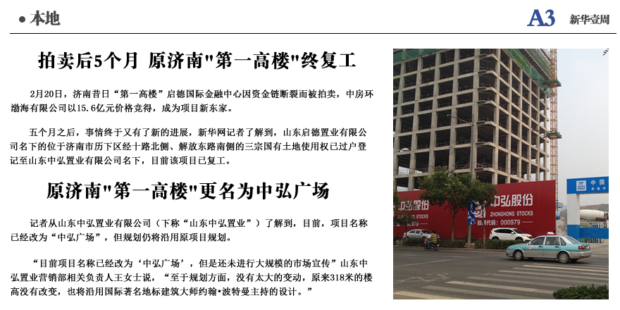 拍賣后5個(gè)月 原濟(jì)南"第一高"終復(fù)工