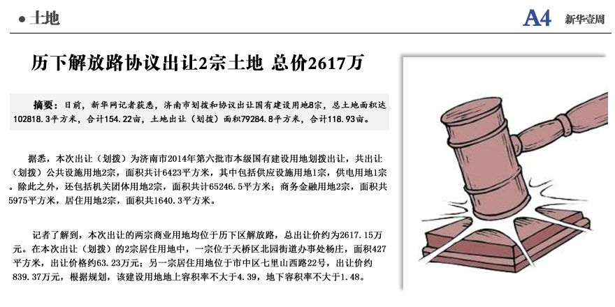 歷下解放路出讓2宗土地 總價(jià)2617萬
