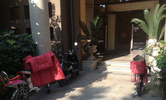 小區(qū)內(nèi)部管理方面,亂停車現(xiàn)象、亂曬被子現(xiàn)象隨處可見。記者發(fā)現(xiàn),雖然每棟單元樓前都貼有嚴(yán)禁停放非機(jī)動車的標(biāo)識,但許多業(yè)主仍然圖方便,將車停在各幢的一層大堂或者路旁的綠化帶旁邊。