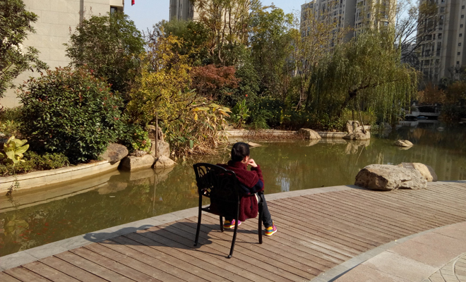 記者隨著她手指的方向看去,小區(qū)“湖”里確實(shí)養(yǎng)有許多小型的紅色鯉魚(yú)?!靶^(qū)景觀綠化好,就跟公園一樣。”是這位準(zhǔn)媽媽對(duì)她所居住的綠地紫峰公館的感受。