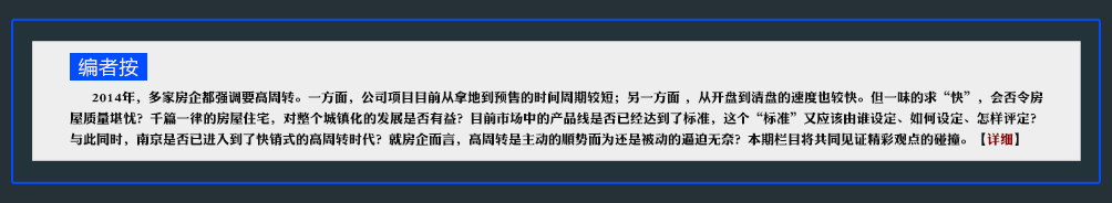 ????張楠:你一定高周轉(zhuǎn)必然帶來同質(zhì)化,這同質(zhì)化是大范圍的,看你開發(fā)商追求的是什么,你的公司屬于一個什么樣的狀況,現(xiàn)在開發(fā)的樓盤和上市的速度都比去年快了很多,你進(jìn)入了這個南京的市場,不管是新進(jìn)的,還是已經(jīng)進(jìn)的,都被市場逼的往前走。南京的城市很好,但是開發(fā)商被市場逼的不得不按這個策略做,這是政府和開發(fā)商都要思考的問題。