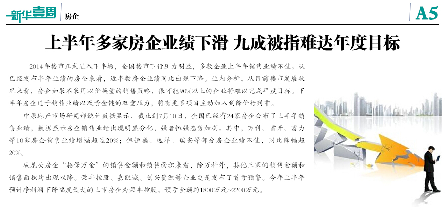 上半年多家房企業(yè)績下滑