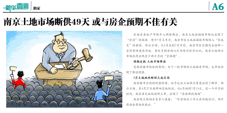 南京土地市場斷供49天