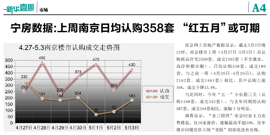 上周南京日均認購358套