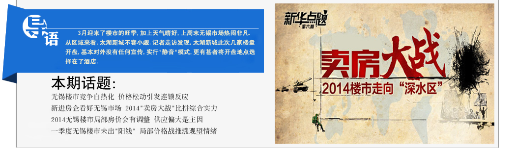 無錫在全國房地產(chǎn)市場(chǎng)中的知名度不斷提高,每年都有近百人次房企來錫考察洽談,每年有5家左右外來房企落戶無錫,無錫的房地產(chǎn)市場(chǎng)也呈現(xiàn)出百家齊放的勢(shì)態(tài),越來越多的外來房企看中和關(guān)注無錫。對(duì)于2014年無錫市場(chǎng)預(yù)期,品牌房企有何預(yù)判?