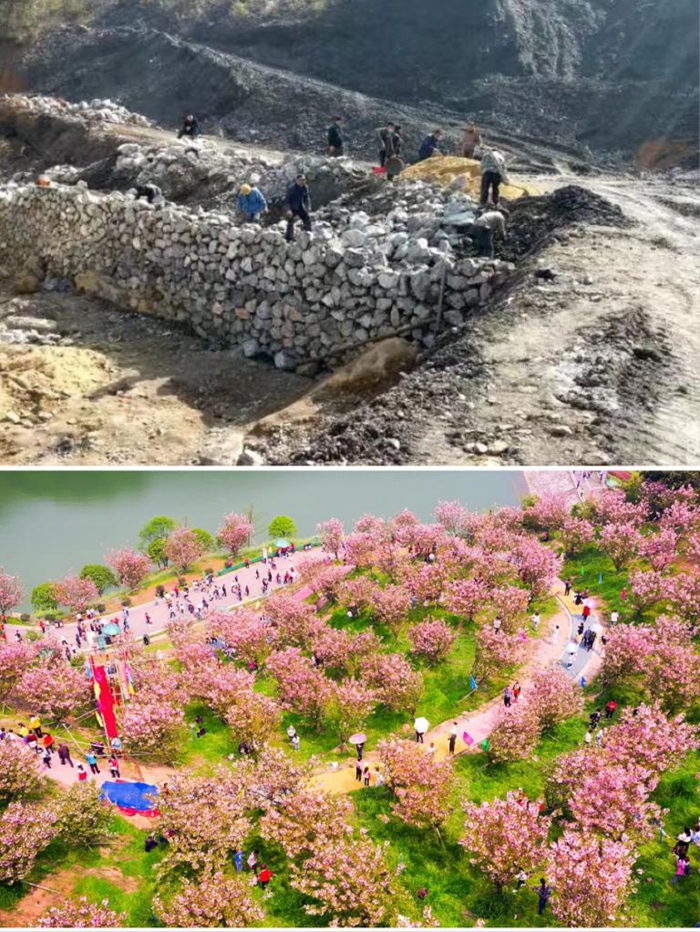 “過去,村里植被破壞、山體損毀、環(huán)境污染,裸露的礦山如一塊塊醒目的‘傷疤’?!甭韵麓妩h委書記周常堅說,當(dāng)年村里7000畝山林,因采礦被破壞的就有近700畝,漫天灰塵讓人睜不開眼。