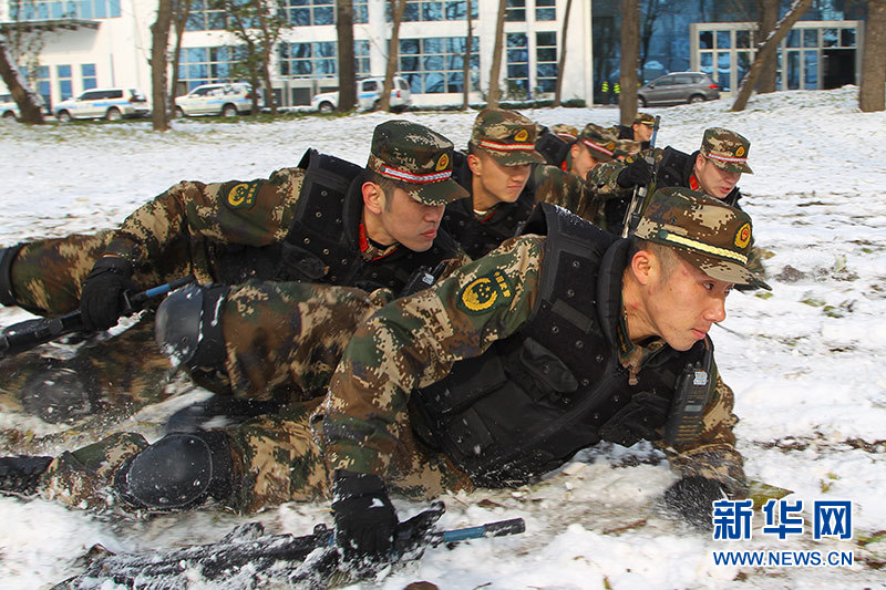 防暴隊隊員在雪地上開展戰(zhàn)術(shù)訓(xùn)練