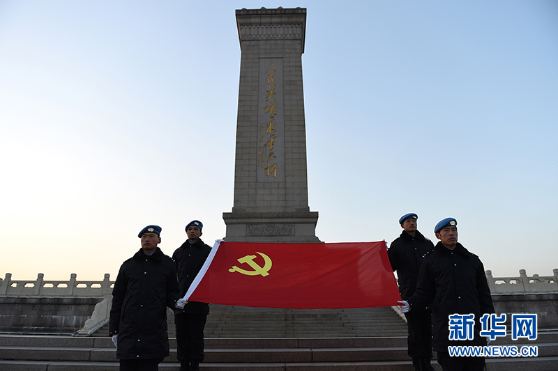 防暴隊(duì)隊(duì)員在人民英雄紀(jì)念碑前重溫入黨誓詞