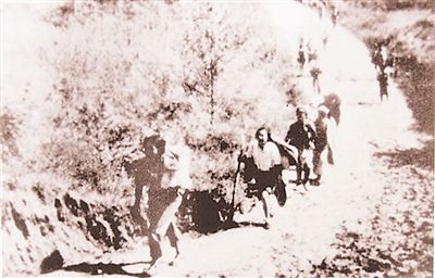 ????抗戰(zhàn)時(shí)期,全國(guó)各地愛(ài)國(guó)青年沖破國(guó)民黨頑固派封鎖,奔赴延安抗大。(資料圖)