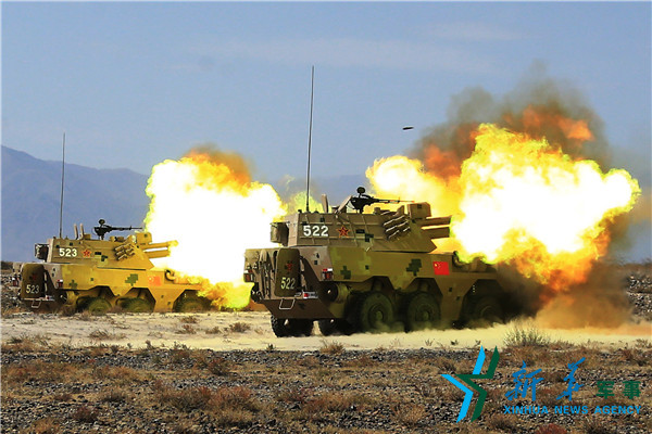 ??? 在吉爾吉斯斯坦巴雷克奇舉行的“和平使命—2016”上海合作組織聯(lián)合反恐軍事演習第三次實兵實彈合練中,中方自行火炮進行實彈射擊(9月19日攝)。新華社發(fā)(王寧 攝)