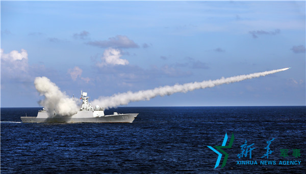 ??? 海軍在海南島至西沙附近??沼蚪M織實兵實彈對抗演練,這是導(dǎo)彈護(hù)衛(wèi)艦運(yùn)城艦發(fā)射反艦導(dǎo)彈(7月8日攝)。新華社記者查春明攝