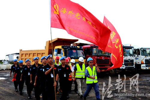 ????利比里亞蒙羅維亞時(shí)間:9月23日,中國第四支駐利比里亞維和警察防暴隊(duì)“黨員服務(wù)隊(duì)”深入利比里亞中國港灣工程有限責(zé)任公司,與該公司支部一起開展“兩學(xué)一做”實(shí)踐,送國旗到工地、給工地工程車張貼國旗,給企業(yè)黨員上黨課、一起交流學(xué)習(xí)黨章,為企業(yè)員工免費(fèi)義診,送健康,團(tuán)結(jié)凝聚利比里亞華人、華僑于黨旗國旗下,同力維和、同心愛國心同,干事創(chuàng)業(yè),為祖國爭光添彩,受到企業(yè)及員工的一致好評。(李金良 鄭志剛)