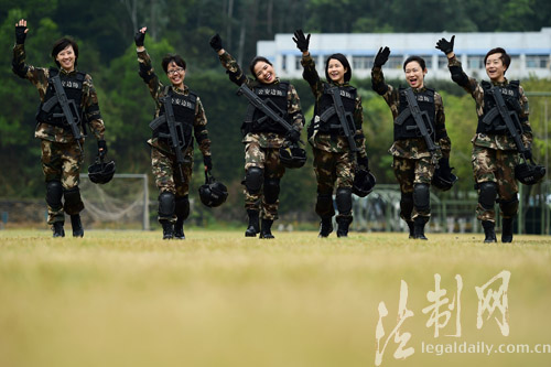 ????“干媽,我太想你了!”“隊長,我要給你個擁抱!”“我也要來個熊抱!”在深圳銀湖山下的邊防警營,記者現(xiàn)場看到,陳偉紅所到之處皆有掌聲,戰(zhàn)士們熱情的上前打招呼、話家常、送祝福。特別是在訓練場,一支六人組成的“霸王花”小分隊格外搶眼,手握九五式鋼槍,腳穿新式防爆靴,個個全副武裝、英姿颯爽,走起路來虎虎生風;細一掂量,僅身上的防彈背心、頭盔、鋼槍就有三十多斤重,均為目前的先進裝備。看到陳隊長到來,霸王花們又變成了小姑娘,紛紛涌向老大姐,拉家常、話思念?!拔覀兌际谴蠼愕耐降?!”女中尉小劉說。作戰(zhàn)訓練科賴紹坤科長介紹,該支隊作為全國公安邊防部隊的機動力量,常年擔負多項緝私、緝毒、救援、處突任務(wù);而該支隊平日里,這些女干部主要分布在各機關(guān)業(yè)務(wù)科室,但是只要任務(wù)需要,她們都將奔赴第一現(xiàn)場;所以平時的訓練同樣嚴格;“女干部和男干部一樣,無論在哪個崗位,每個季度都會組織進行體能、技能考核!”(廖鍵)