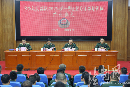 ????4月25日上午,公安邊防部隊2017年第一期正團(tuán)職干部培訓(xùn)班在上海邊防總隊訓(xùn)練基地舉行結(jié)訓(xùn)典禮??傟牶拖驏|政委出席并講話。