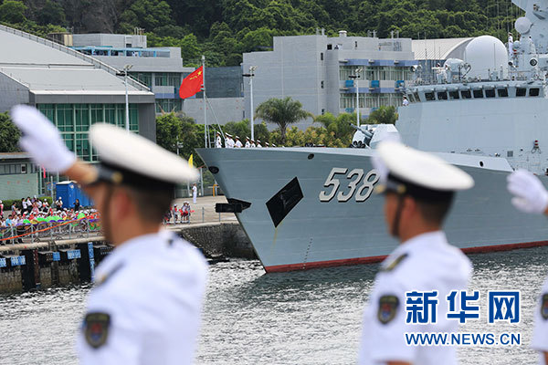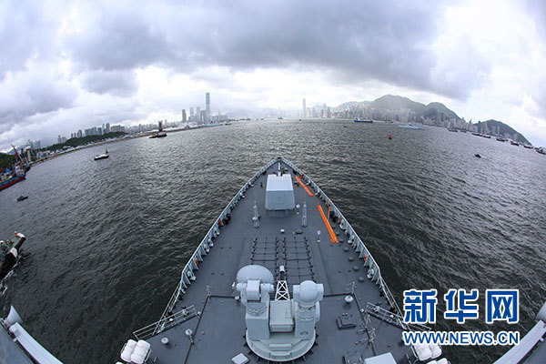 7月7日,海軍銀川艦駛?cè)胂愀郯捍薮a頭。當日,正在執(zhí)行跨區(qū)機動訓練任務(wù)的中國人民解放軍海軍航母編隊抵達香港,參加香港回歸祖國暨中國人民解放軍進駐香港20周年慶?;顒?,受到香港特區(qū)政府和民眾熱烈歡迎。新華社記者 曾濤 攝
