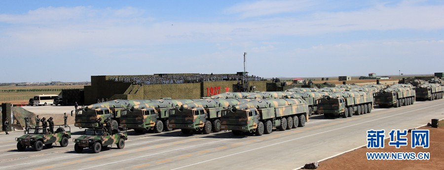 新華社內(nèi)蒙古朱日和7月30日電(記者李兵峰、陳曦)核常兼?zhèn)洌驊貞?zhàn)。在慶祝建軍90周年閱兵中,由火箭軍1個部隊方隊和4個導(dǎo)彈方隊、5型導(dǎo)彈組成的戰(zhàn)略打擊群,以“壓軸”方式光榮地接受檢閱。